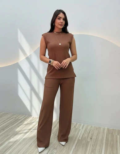 Conjunto confeccionado em tecido anarruga. Conhecido pela sua versatilidade e conforto, o tecido proporciona liberdade de movimento devido a sua elasticidade.