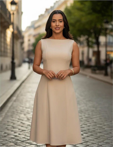 Esta peça exala sofisticação e elegância com cada detalhe cuidadosamente elaborado. Confeccionada em tecido Oxford, tem um caimento estruturado e leve que garante um movimento delicado do vestido.